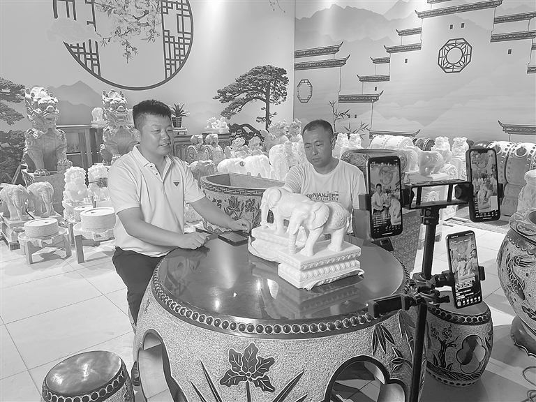 保定晚报讯(通讯员郑义 刘昊东)“直播间的各位网友们,大家好!今天给大家带来的是一款小象造型的汉白玉产品,摆放家中,有‘吉祥、如意’的象征寓意,还可以定制各种尺寸。”7月24日,直播镜头前,曲阳县羊平镇中村党支部书记、村委会主任高瑞刚正在推介本村的雕刻产品,一件件精美的石雕产品,吸引着网友的关注,这是该镇发展电商经济的一个缩影。