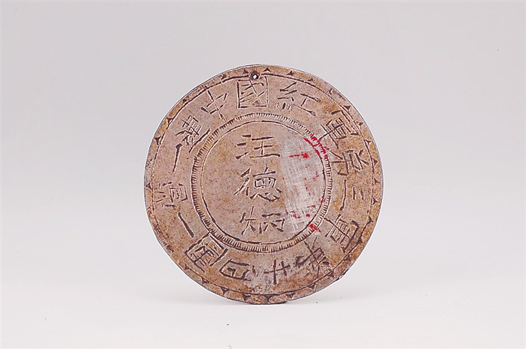 土地革命时期汪德炳的银质证章(国家一级文物)。