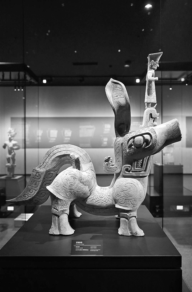 文化与科技的融合是新馆展陈的又一亮点。考虑文物结构安全问题,展览利用AI算法,结合文物修复师手工拼对,实现青铜神坛、青铜骑兽顶尊人像、青铜鸟足神像这三件文物的跨坑拼对,并通过3D打印技术1∶1重现文物原貌。