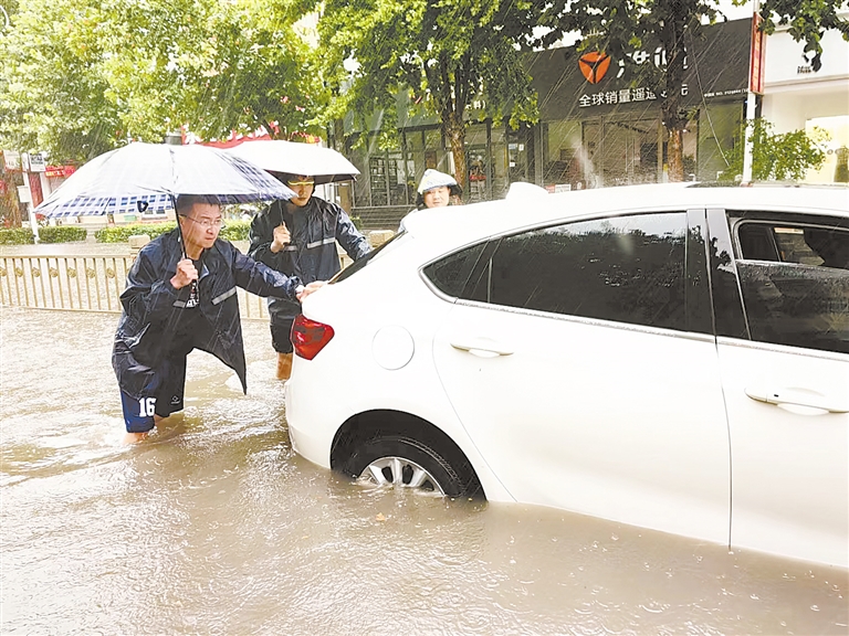 7日,当时积水还很严重,樊兆磊紧急协调三台抽水设备对甲秀路永济公园路段、双塔中学路段积水进行倒排,下午5时,水位才明显下降,低洼地带还存有少量积水;