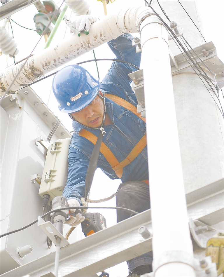 “大家再细致点,一滴水都不能有,确保安全!”8月8日中午,在涿州110千伏新业变电站,国网保定供电公司变电检修中心主变专责郭会永正和同事拿着手提吹风机,对电力设备进行细致地清理、风干。