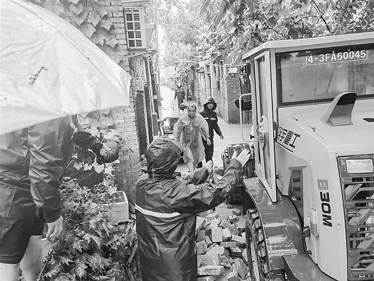 体育场社区书记李红艳一线抢险救援。 王琳 摄