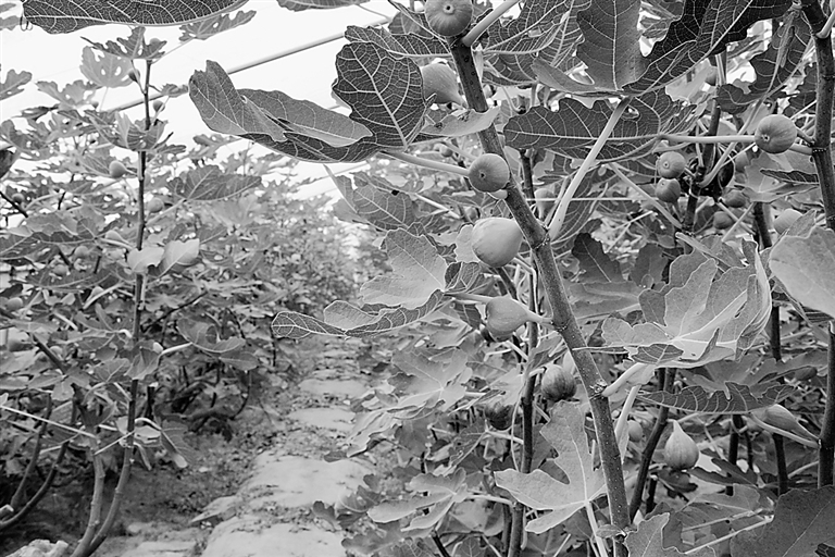 棚室内的果树统一修剪成两米多高,采摘不用上梯子,站在地面上就能轻松摘果。这里的无花果在培育过程中不打农药,施有机肥,果实在纯自然状态下生长,果肉营养丰富,是地地道道的纯天然水果。