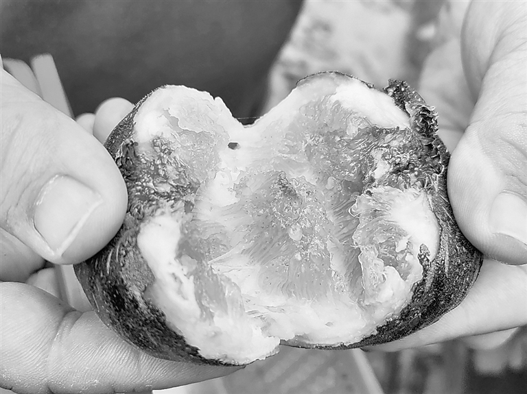走进棚室,一株株无花果树青翠欲滴,成熟的无花果呈紫红色,外形酷似灯笼,从顶端裂开,露出粉嫩的果肉,散发出迷人的果香。掰开果实,里面呈半透明状,吃进嘴里绵糯香甜,齿颊留香,似乎咬上一口就能甜到心坎里。