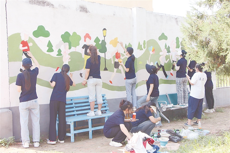 该县苏果庄村与河北工艺美术职业学院开展的暑期“三下乡”社会实践活动相结合,将传统美德、纺织文化、体育运动和美丽乡村建设等内容绘成一幅幅村民喜闻乐见、通俗易懂的墙壁画,让群众在家门口接受文明新风尚的熏陶,实现乡村振兴“颜值”“内涵”的双提升。