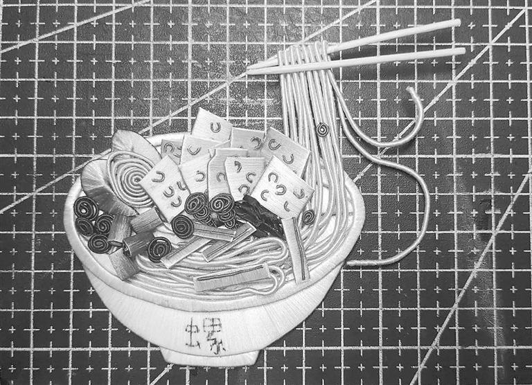 来自四川成都的一位网友将“新繁棕编”这项非遗技艺发扬光大,普普通通的棕榈叶在她的巧手中摇身一变,化身迅猛龙、猫头鹰、独角仙、大蜗牛、小青蛙等栩栩如生的动物。来自兰州的网友“绾云舒”则是将原本用来做钗、簪之类的缠花技艺和美食元素相结合,制作缠花版的“螺蛳粉”“红烧肉”和“火锅”,收获大量网友喜爱。