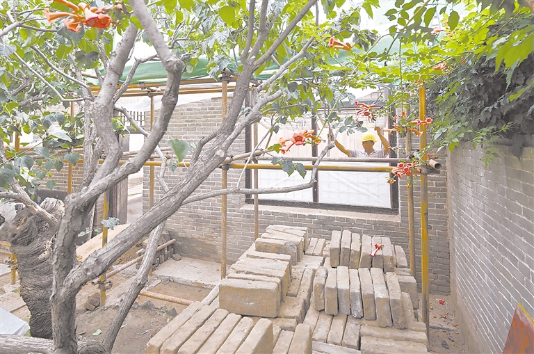 8月29日,工人在李大钊故居维修保护工程工地施工。连日来,位于河北省唐山市乐亭县胡家坨镇大黑坨村的全国重点文物保护单位——李大钊故居的维修保护工程稳步推进。据介绍,此工程修缮施工将最大程度保留建筑物的原有形制、材料、工艺、历史信息,增强其抵御自然界侵蚀的能力。修缮工程预计10月底竣工。 新华社记者 杨世尧 摄
