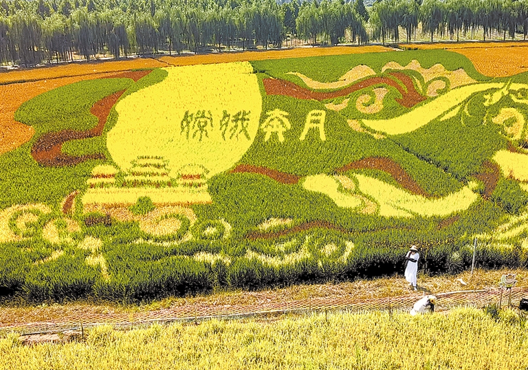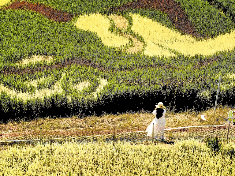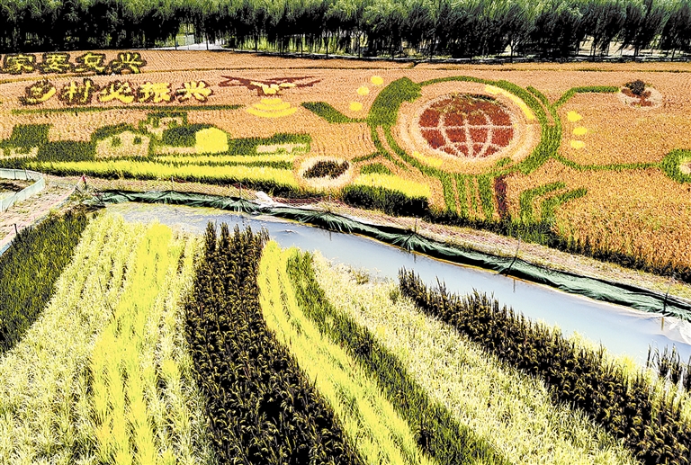 眼下正值水稻生长的旺季,在徐水区神农园,百亩水稻即将成熟。这片一望无垠的“金色海洋”里,勤劳的农民以稻田为“画布”,以彩稻为“画笔”,利用特种水稻绿、黄、白、红、紫五色色差,绘就出一幅幅妙趣横生的稻田画,诉说着丰收的喜悦之情。