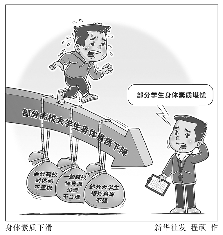 记者调查发现,大学生身体素质下降,既有学生不愿锻炼的原因,也和一些高校对体测不重视、体育课设置不合理相关。