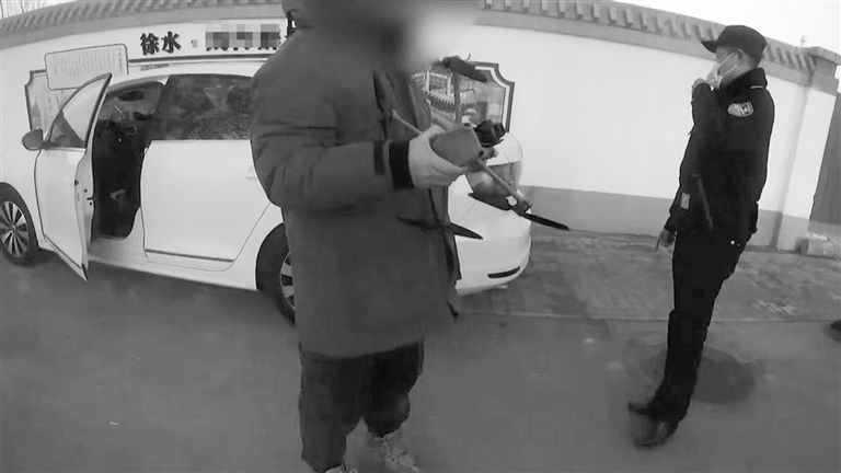 民警上前制止男子收回无人机。