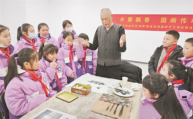 近日,竞秀区隆兴小学师生代表走进假日丽城社区新时代文明实践站,联合国画家翟洪泉先生开展“水墨飘香、国画传承”活动。国画课堂上,翟洪泉老师从个人成长经历、国画握笔下笔姿势、画前准备等方面入手,详细讲解了国画的技巧要领。同学们专注倾听,仔细观摹,看着老师慢慢地将一个个传神的小动物呈现纸上。活动现场,同学们随着老师的讲解,认真进行了国画创作,并在老师的带领下观看了画作。 吴琼 报道