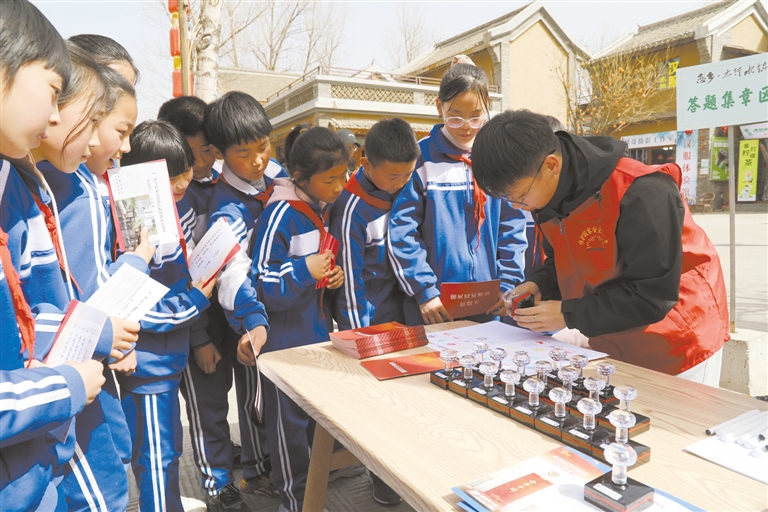当日,在易县恋乡·太行水镇国家安全主题知识研学现场,易县县委办工作人员通过国家安全知识答题集章“微”课堂,为大龙华中心小学的同学们解读“国土安全、军事安全、经济安全”等国家安全的细分类型。下午,在易县狼牙山五勇士广场,易州学校、易县第二小学的学生们唱响《中华力量》,演绎舞蹈《当我戴上红领巾》,展现青少年的活力与精气神,表达自觉做国家安全遵守者和捍卫者的信心。