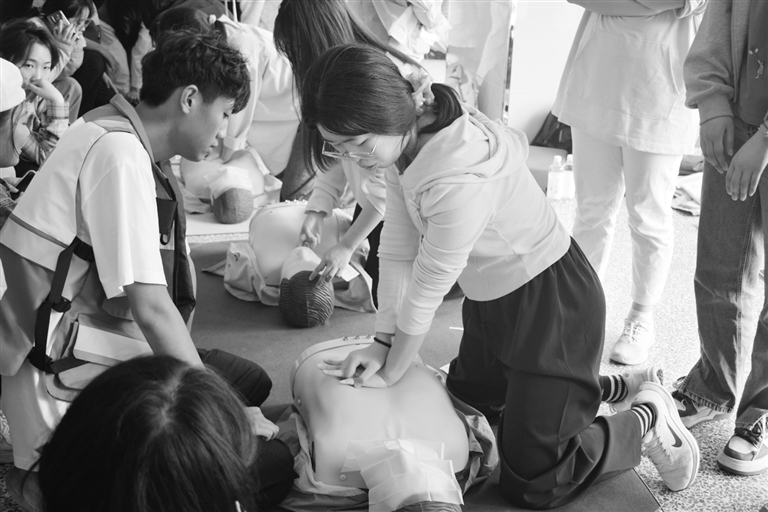 河北大学志愿者接受急救技能培训。