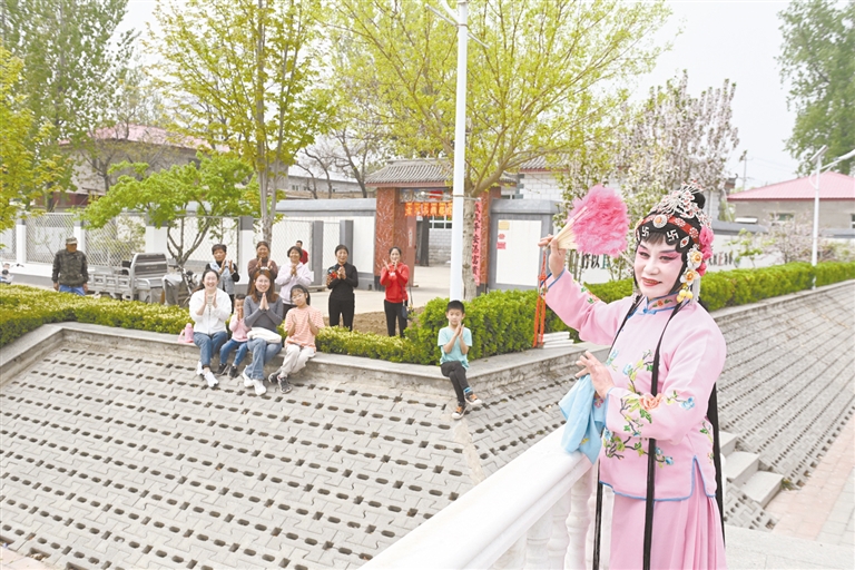 东仙坡镇西仙坡村,村民在游园桥上唱戏,引来阵阵掌声。 王满权 摄
