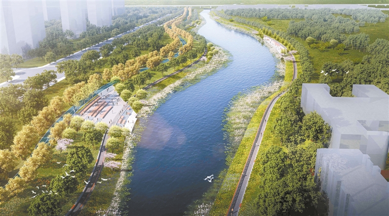李文玉指着施工图对应区域,边走边向记者介绍:“河道北侧,工人们正在施工建设的就是天水桥公园,占地面积65亩,由四个船帆形建筑组成,既是小型商业街,又能供市民赏景休憩。岸边将建设弧形的观水飘桥,桥体采用钢结构、悬挑形式,让市民能近距离感受府河风光,实现‘人水和谐’的美丽图景。”等到工程完工时,府河将成为展示历史文化、建设景观绿道和公园城市的综合廊道,成为城市生态、城市文脉、城市活力的核心地带及城市发展的绿色引擎。