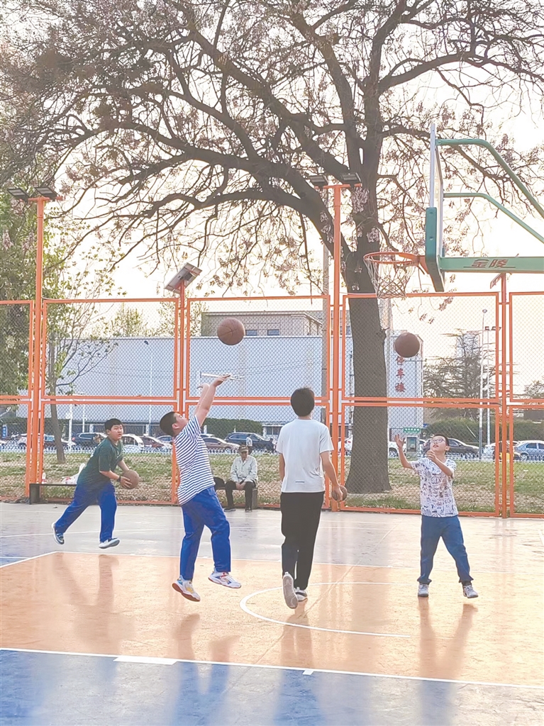 “传球,漂亮,3分!”位于东风路与向阳大街交叉口附近的篮球场,每天下午6时都会聚集不少篮球爱好者,72岁的孙黎民就是其中之一。“年纪大了,不能像年轻人那样跑跑跳跳地剧烈活动,平时运运球,投投篮,简单活动活动胳膊腿。”孙黎民说,现在许多路口附近设置了篮球、足球场、乒乓球台等,不仅方便市民就近健身,更满足了不同人群的锻炼需求。