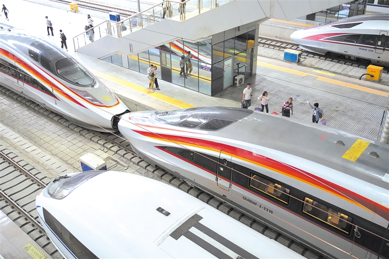 6月15日零时起,全国铁路将实行新的列车运行图。调图后,全国铁路安排图定旅客列车12690列,较现图增加205列;开行货物列车22595列,较现图增加74列,铁路客货运输能力、服务品质和运行效率进一步提升。 新华社发(唐克 摄)