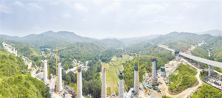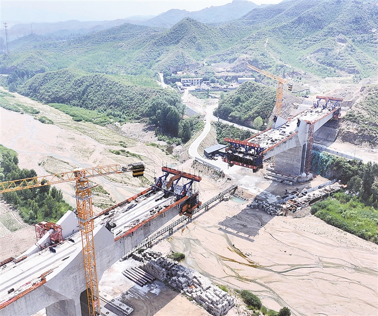 巨龙绕山行,跨西阜特大桥建设现场。