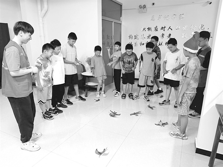 大学生志愿者带领孩子们一起玩转科普游戏。 刘迪 摄