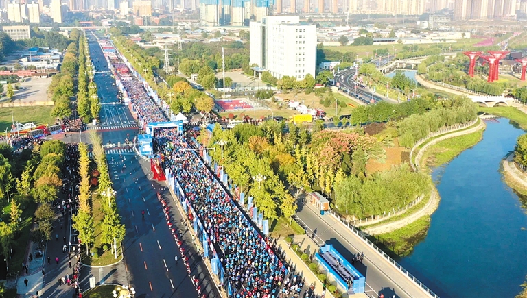 环城水系扮靓现代化品质生活之城,图为2023保定马拉松赛事盛况。