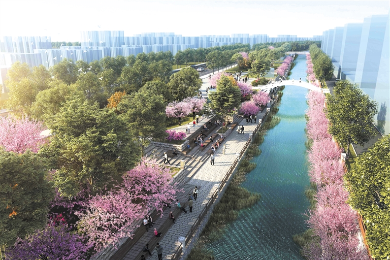 如今的孝义河(高阳段),河中碧水悠悠,两岸郁郁葱葱。