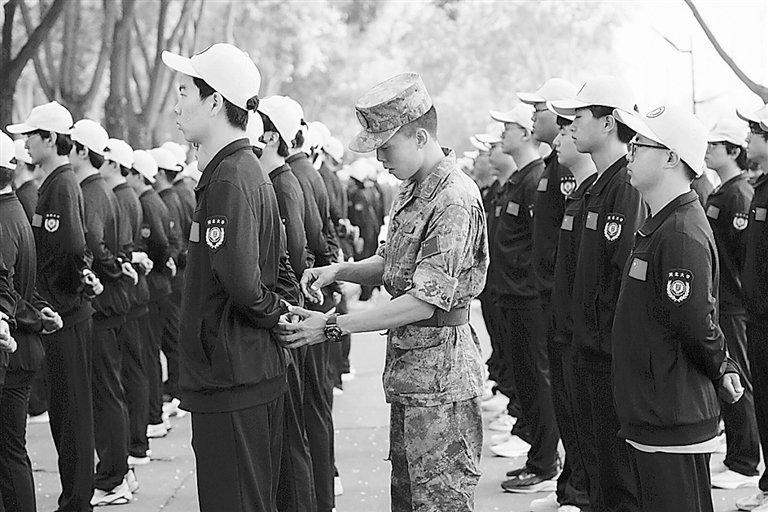 军训现场,教官们认真严肃、掷地有声地为队员们讲解基础队列的动作要领并为队员们纠正动作。队员们的进步离不开教官们良好的组训方法和认真负责的态度。经过几天的训练,河北大学的同学们逐渐适应了军训生活。在训练场上,他们身姿挺拔、气势如虹。队员们的队列动作进步明显,团队意识也逐渐增强。晚间训练,各方队组织拉歌,声声军歌注满同学们的敬意与爱国情怀,也更加体现了同学们的活力与团结。