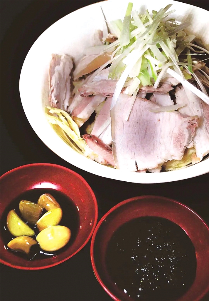 出自保定“五楼”之首的义春楼,1908年,最早叫猪头肉锅罩火烧,冯玉祥最爱,梅兰芳、侯宝林都吃过。 火烧脆皮撕出彩云片,煮熟的白肉切得边薄中厚,大葱切段,同盛在碗内用开锅头汤反复浇至罩透,再盛少许透亮乳白的汤汁,肉鲜、汤清、味美,三吃六味,肥而不腻,瘦而不柴,软而不烂。