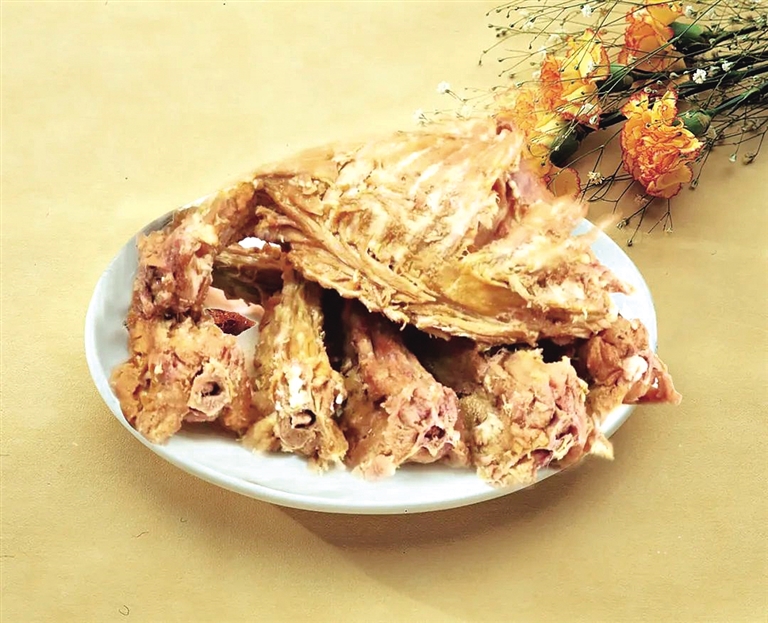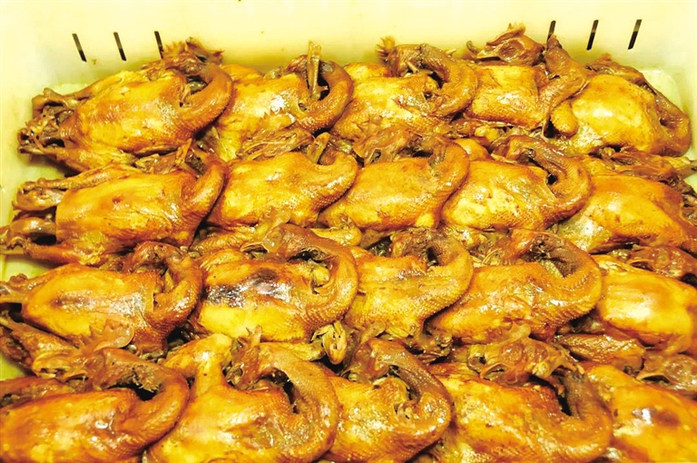 一锅老汤,上等食材,精细卤煮,保定卤煮鸡以加工精细著称。配料讲究自不必说,卤煮的时间与火候也依鸡龄长短“量身定制”。 作坊式生产的卤煮鸡,外形丰满,色泽鲜艳,呈现形式非常接地气,一个大盆盖上厚厚的白色棉布,诱人的香味依旧飘逸得飞扬肆虐。 最令人称奇的是,不破皮、不脱骨,骨脆,肉软而不烂,扯一条放到嘴里肉丝浸满了独特配方的卤煮味道。醇香、鲜嫩,不塞牙,不腻口,那其中有浓郁的历史沉香。