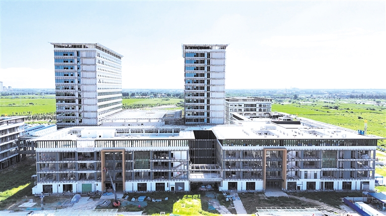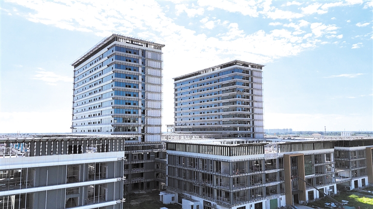 云天收夏色,木叶动秋生。8月18日的国际医疗基地一派忙碌景象,北京儿童医院保定医院、广安门医院保定医院两所医院新院区的建筑主体结构均已完工,正在进行外墙装饰。