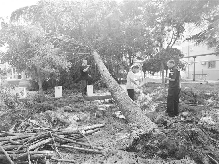 保定晚报讯(记者韩瀚 通讯员王若羽)8月26日暴雨天气过后,竞秀区电力学院社区工作人员发现列电西院小区出现树木倾倒情况,影响小区环境和居民出行安全。