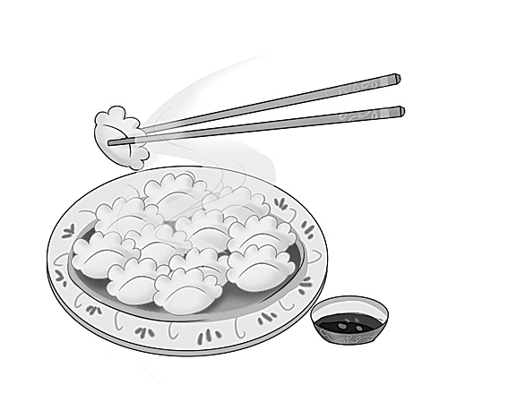 再看院里屋里,墙角旮旯都是吃饺子的人。因为没那么多碗筷,人们就地取材,就用石板片托着吃,还有的晾到院里烧香供神用的台子上用手抓着吃,讲究一点的折两根小棍或找两根秫秸尖做筷子……看吃相可谓千姿百态,观场面可说热火朝天,嬉笑声弥漫整个夜空……