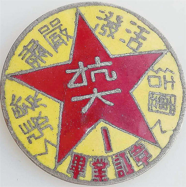 抗大第一期毕业证章。湖北军民抗战纪念馆藏