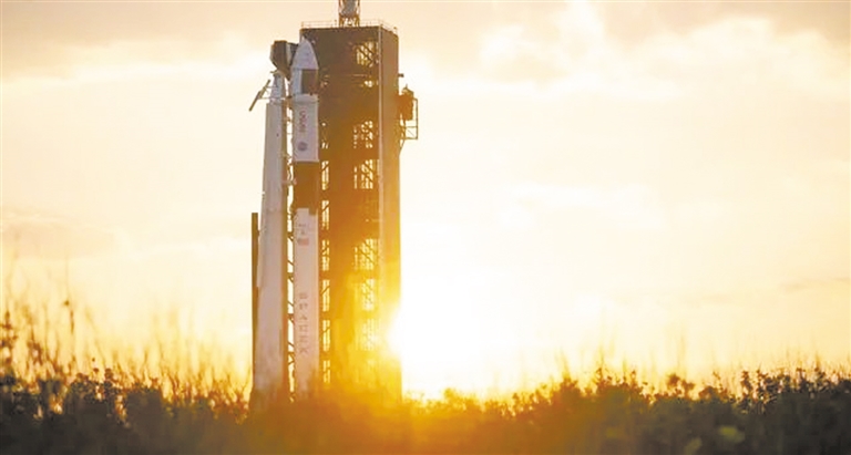 这是2023年2月25日在美国佛罗里达州肯尼迪航天中心拍摄的“龙”飞船和“猎鹰9”火箭。 新华社发(美国航天局供图)