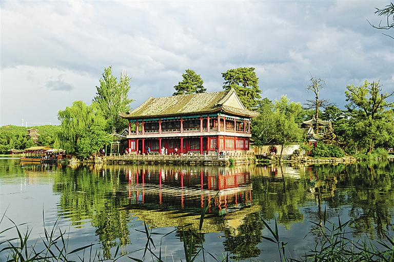 避暑山庄烟雨楼。避暑山庄,又称“承德离宫”或“热河行宫”,是一座集历史、文化、自然与建筑艺术于一体的皇家园林。