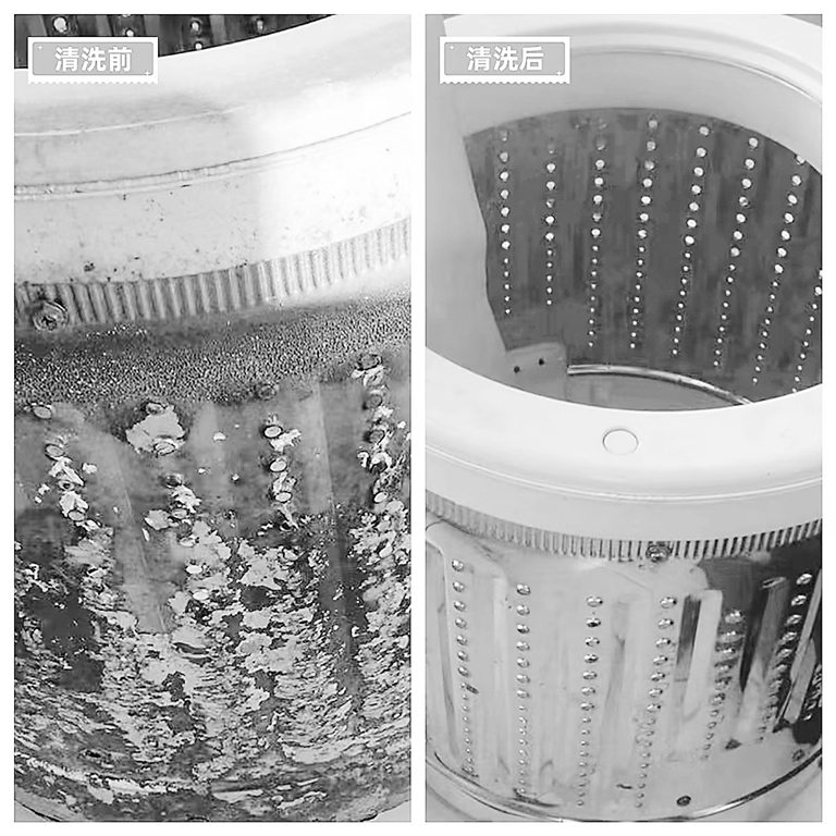 图为洗衣机内桶清洗前后对比。