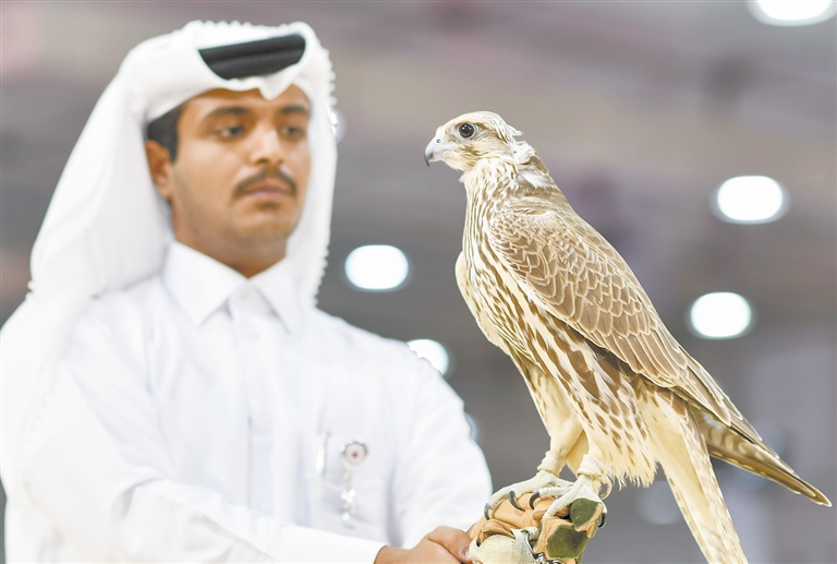 9月10日,在卡塔尔多哈,一名参展者在国际狩猎和猎鹰展上展示猎鹰。 当日,第八届国际狩猎和猎鹰展在卡塔尔首都多哈的卡塔拉文化村开幕,共有百余家公司参加本次为期五天的展会。 新华社发(尼库 摄)