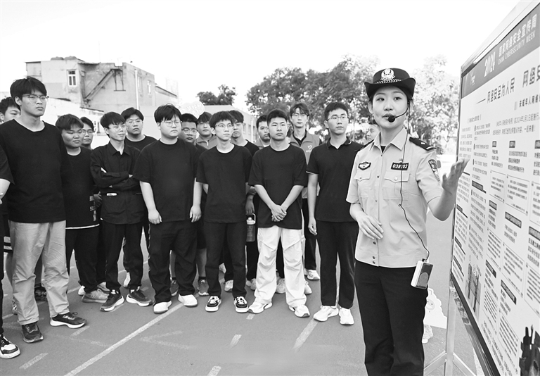 网安民警向学生介绍国家网络安全宣传周的相关内容。 高欣悦 摄