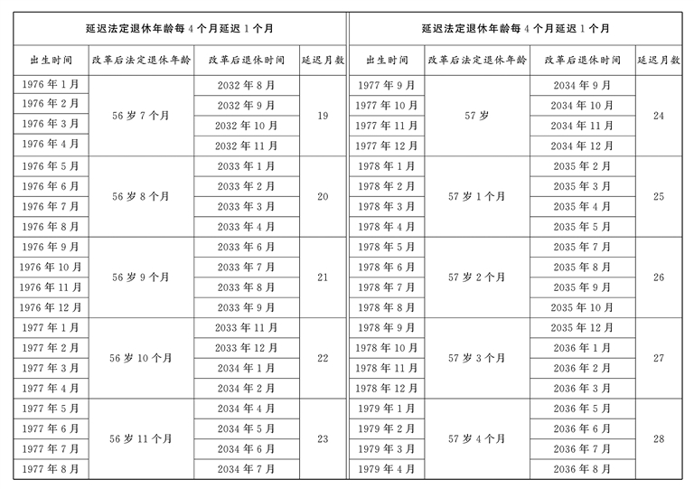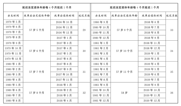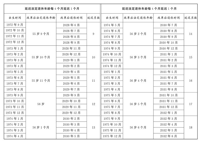 原法定退休年龄五十五周岁的女职工延迟法定退休年龄对照表