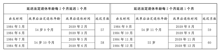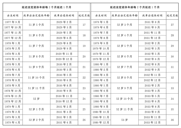 原法定退休年龄五十周岁的女职工延迟法定退休年龄对照表