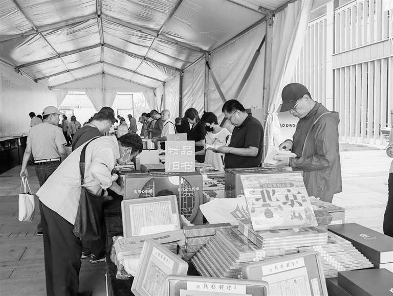 活动现场,人头攒动,书摊前皆是或驻足挑选、或静静翻书的人。书架上,一排排旧书整齐地摆放,有的已经泛黄,有的书角微微卷起。在旧书新知展区,首次跟随地坛书市而来的中国书店特意为保定的读者带来丰厚的文化大餐。“五千年的中华文明史为我们留下了浩如烟海的典籍,同时中国又是印刷术的故乡,因此,典籍在文明传承中起着不可替代的作用,也是一个重要载体,希望通过这些典籍里的文字让中华文明的突出特性更直接地面向观众。”中国书店有限责任公司总经理助理刘易臣介绍,此次“地坛书市进保定”活动,中国书店和首都图书馆共同举办中华文明的五个突出特性——典籍篇专题展览,该展览共筹备了42类60余件展品,其次还带来了一万余种古旧书,涉及历史、文学、哲学、艺术、社科等各个方面,希望品类丰富的古旧书能够为保定以及河北的读者提供更多选择的空间,让大家体会到淘书之乐。