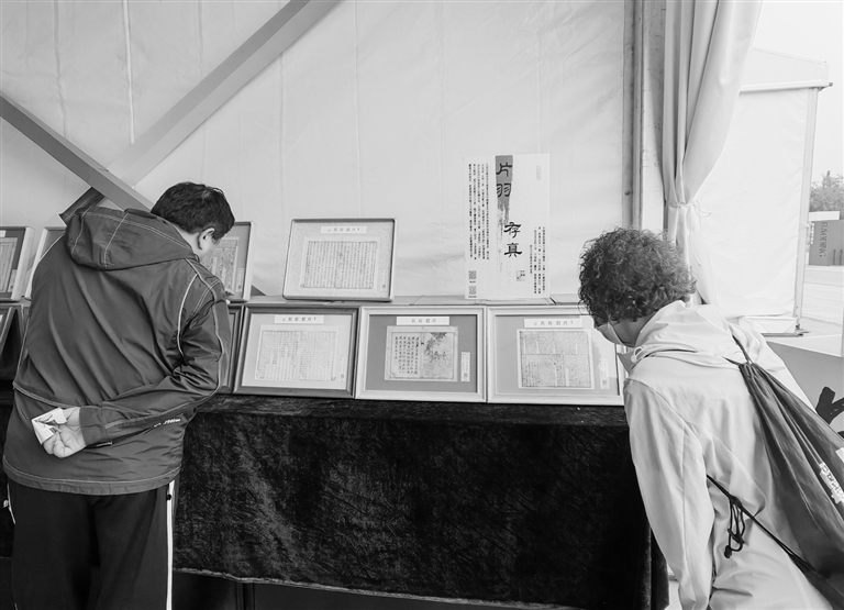 ▲来自中国书店的文创产品“片羽存真”吸引读者驻足观赏。