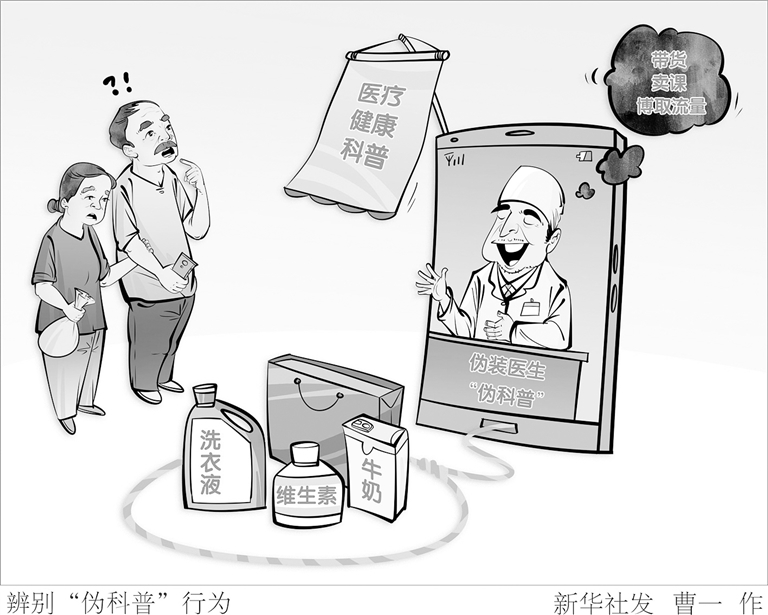 然而,“新华视点”记者调查发现,一些伪装医生、“伪科普”、带货卖课博取流量的行为,却让医疗健康科普变了味、走了样。