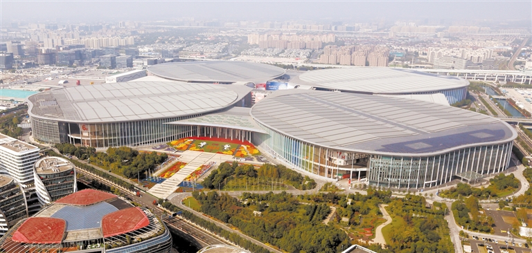 这是11月4日拍摄的中国国际进口博览会举办场地——国家会展中心(上海)(无人机照片)。第七届中国国际进口博览会将于11月5日至10日在上海举办。 新华社记者 凡军 摄