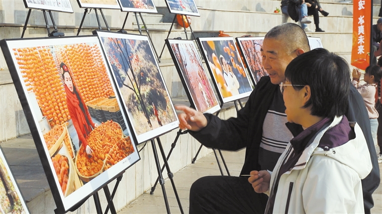 11月2日,与会采购商正在欣赏易县柿子丰收摄影作品。 郭恩桥 摄
