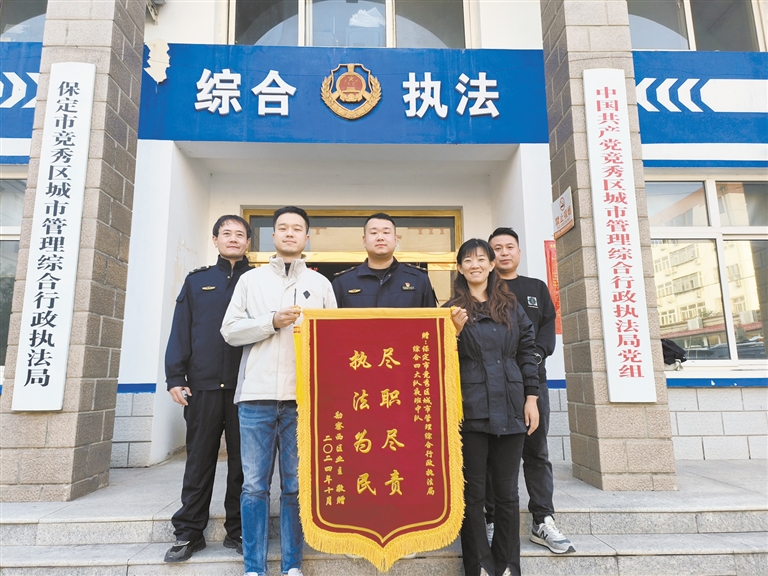 东风路勘察西区居民为表感谢,到竞秀区执法局送上锦旗。 郝长鸿 摄