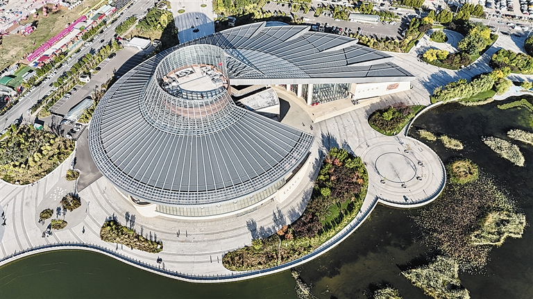 从空中俯瞰,剧院整体犹如一把折扇舒缓展开,预示着保定的文化事业正在展开一段新的发展与创新。