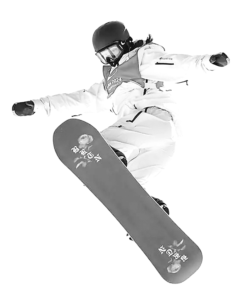 2月24日,北京队选手张小楠在第十四届全国冬季运动会单板滑雪青年组女子大跳台决赛中。 新华社记者 龙雷 摄