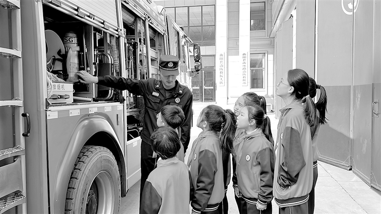 保定晚报讯(通讯员王芳)11月3日,曲阳县文昌小学部分师生走进曲阳县消防救援大队,开展“119消防日”宣传教育活动。