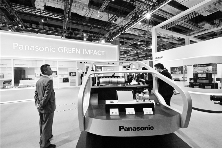 11月5日,参会者在第七届进博会消费品展区松下展台参观。 新华社记者 辛悦卫 摄