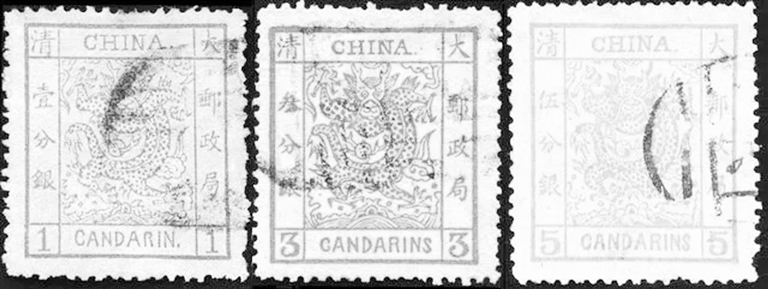 “大龙邮票”邮票图案正中画了一条五爪蟠龙,衬以云彩水浪。一个皇权的象征,一个没落前的大清帝国的最后光芒,在邮票上跃然而现。面值用银两计算:“一分银”“三分银”“五分银”。不同面值对应不同颜色。该套邮票的发行,成为我国近代邮政创办的重要标志。